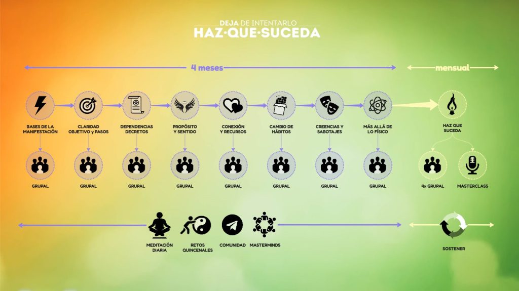 Esa es precisamente la consigna principal del programa Haz Que Suceda. Cada mes hay contenidos nuevos con herramientas y ejercicios propuestos nuevos, pero no tienes que seguirlos al día! Son solo distintos abordajes de lo mismo. Lo vas haciendo a tu ritmo, y vas seleccionando los contenidos que ahora mismo más te convenga aplicar.